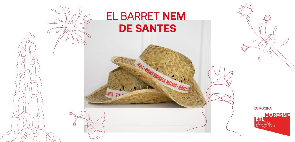 Mataró, 13 de juliol 2023 — Negoci Empresa Mataró (NEM) presenta, per catorzè any consecutiu, el barret de palla NEM de Santes. En aquesta ocasió, el barret lluirà la cinta de color blanc amb lletres impreses en color vermell i està patrocinat per l’assessoria fiscal i jurídica ETL Maresme.