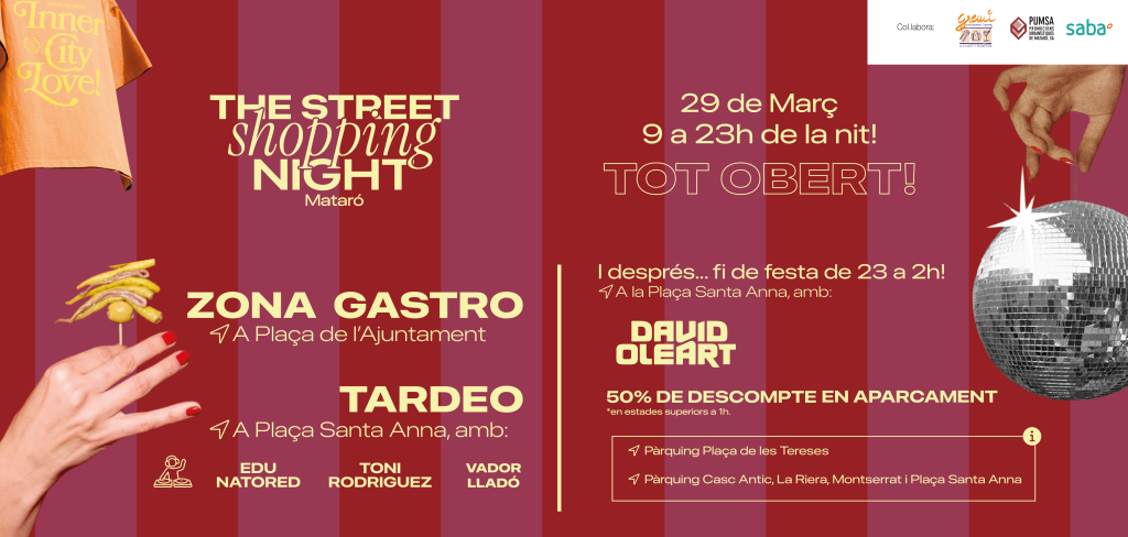 Mataró tornarà a viure el proper dissabte 29 de març una nit de compres, oci, gastronomia i música amb la primera edició de primavera de la The Street Shopping Night. En total, hi participaran prop de 100 empreses de comerç, serveis i restauració de la capital maresmenca.